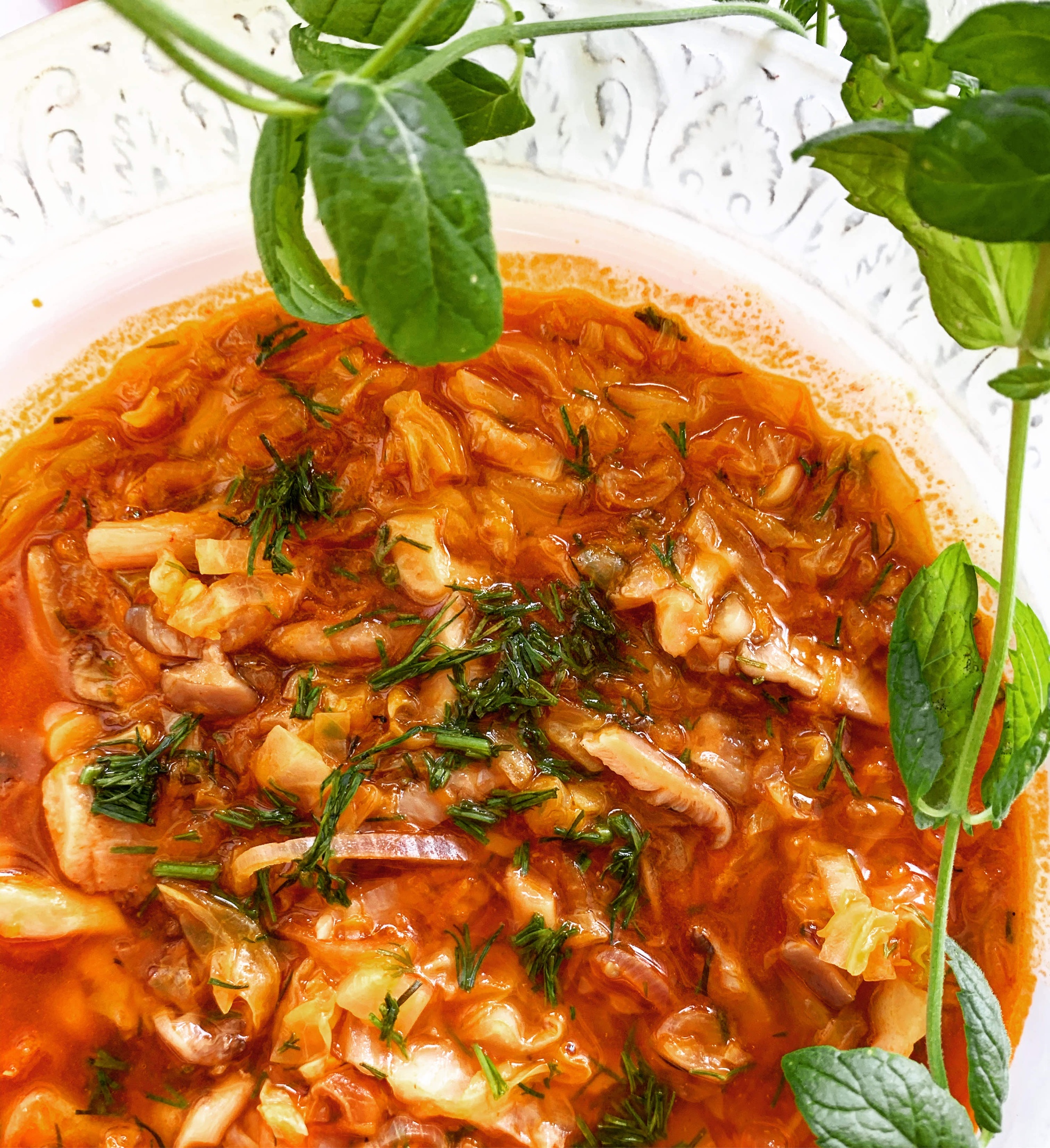 Щи из молодой капусты с вешенками