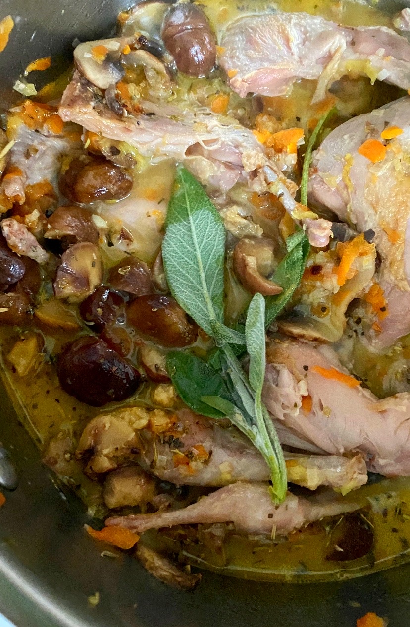 Перепёлки с грибами и каштанами